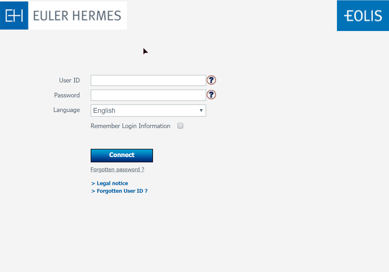 To register for the first time in EOLIS, enter the username and eight-digit password that you received from Allianz Trade.