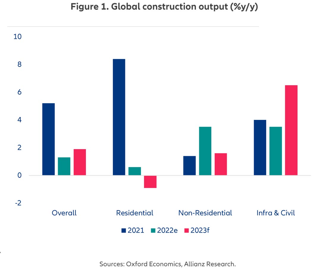 Drag on residential from higher interest rates to weigh on the global construction sector but resilient non-residential segment