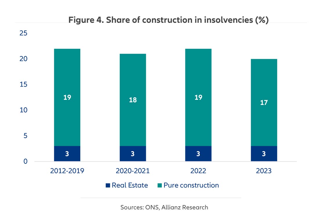 Despite profitability on the strong side, smaller firms in the sector grapple with liquidity issues as cash flow is crucial in construction since companies often have to pay for materials and labour upfront while being paid in instalments. Unsurprisingly, construction firms make up for about 30% of insolvencies in most countries.