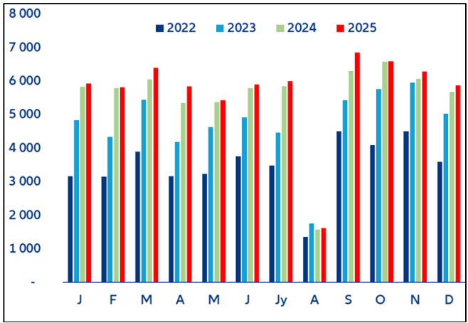 Les données officielles font état de 68 574 défaillances d’entreprises comptabilisées en France en 2025, en phase avec notre décompte provisoire de 68 500 défaillances annoncé début janvier 2026. Il s’agit d’un record historique confirmé avec un bilan annuel en augmentation de +3,5 % par rapport à 2024.